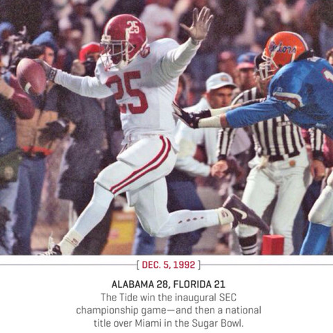 Three seasons later, the low and gruff-voiced Stallings—he did sound a little like the Bear—had restored order to the realm. His teams had both halted, and reversed, a four game losing streak to their deadly rival Auburn in the Iron Bowl. Then, in 1992, the Tide won the Southeastern Conference title outright with an undefeated record, a run which included an epic, cold-blooded triumph in the first SEC Championship game over a superb Florida Gators team coached by Steve Spurrier, the lethal revolutionary on the brink of a hostile takeover of the Bear’s old realm.
